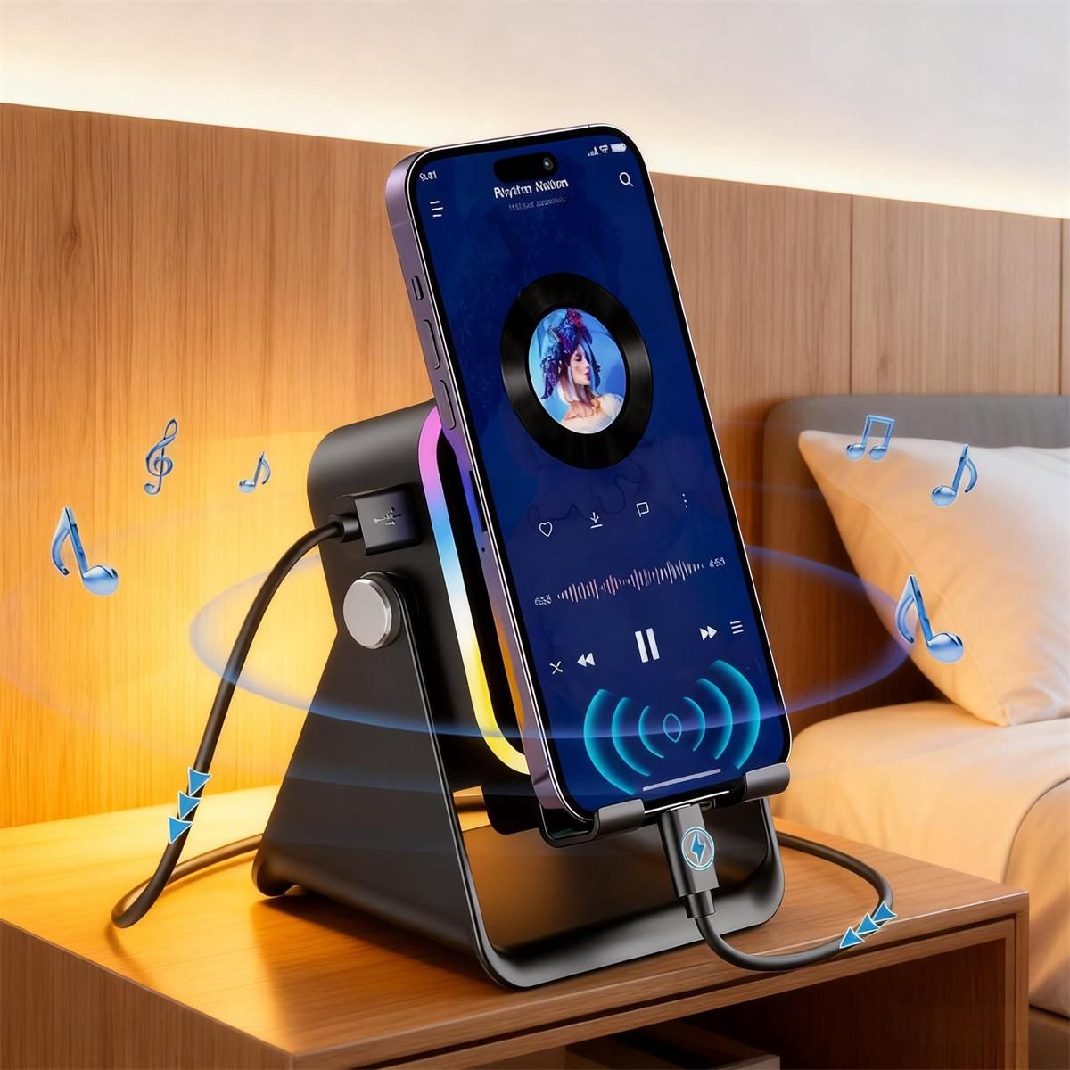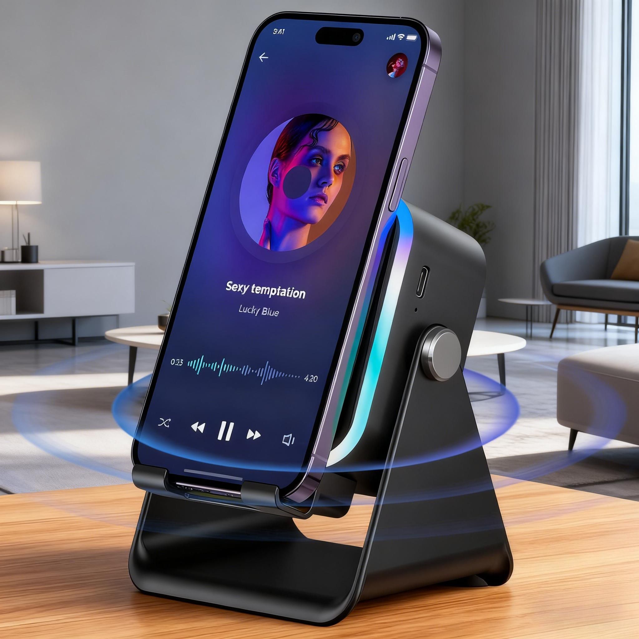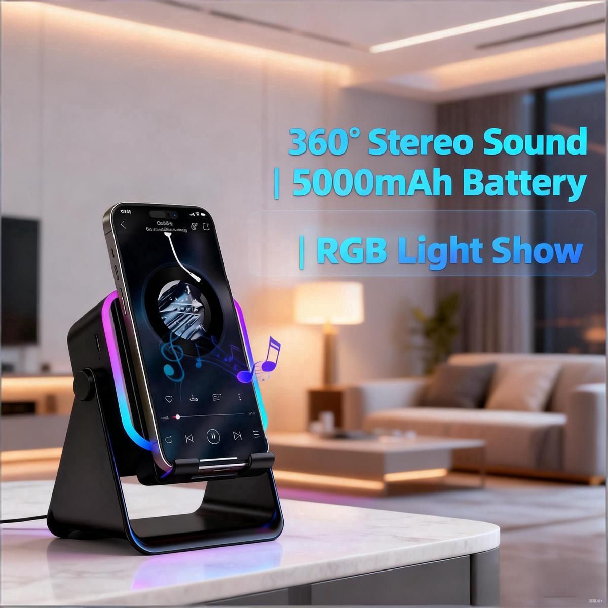 5 IN 1 Wireless Induction Audio Bluetooth Speaker, 360° Rotation Stand with LED,Universal Speaker Stands for Surround Rechargeable Portable Desktop Stand Hands-Free. For Home, Office, Kitchen, Shower, Outdoors, Camping, Travel.Gifts for Men Women