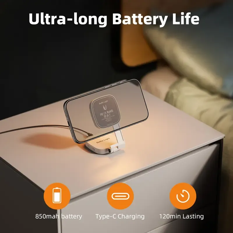 Folds down to only 6.4×7.5×2.2cm and weighs just 110g—fits easily in your pocket. Doubles as a makeup mirror and phone stand, perfect for touch-ups and well-lit selfies anywhere.