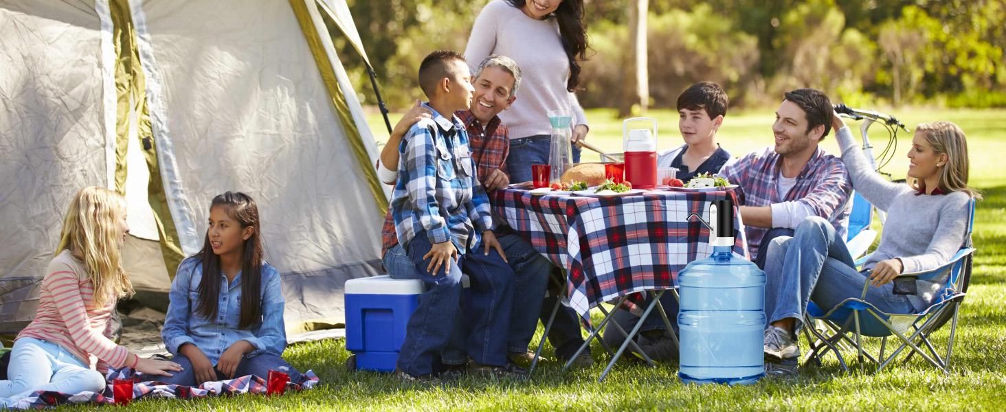 Portable & pump for picnics ensures clean water access, enhancing outdoor dining convenience.
