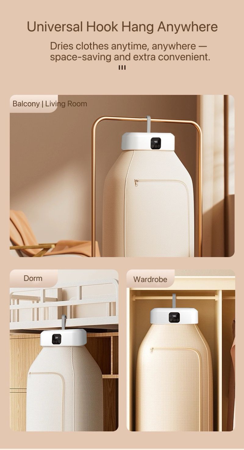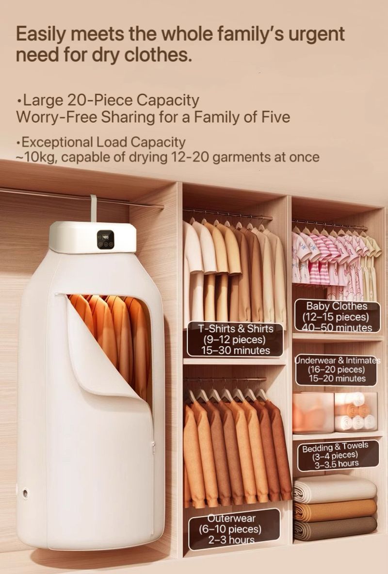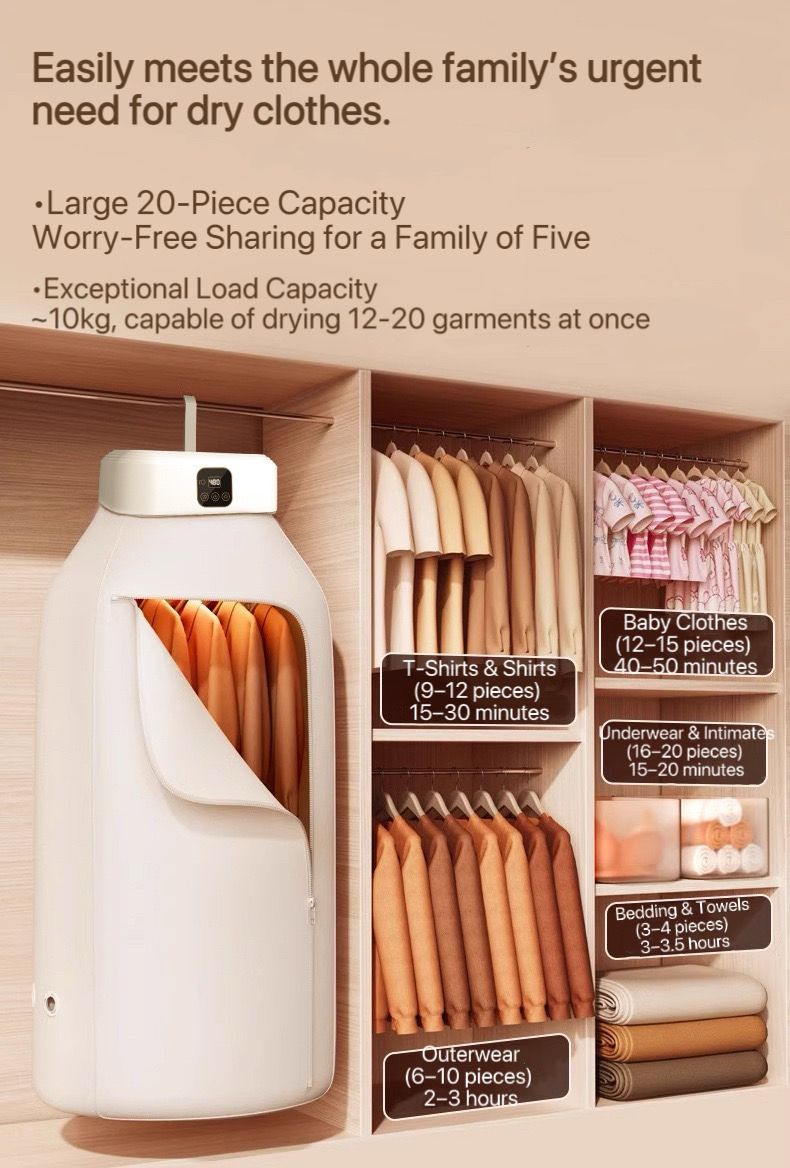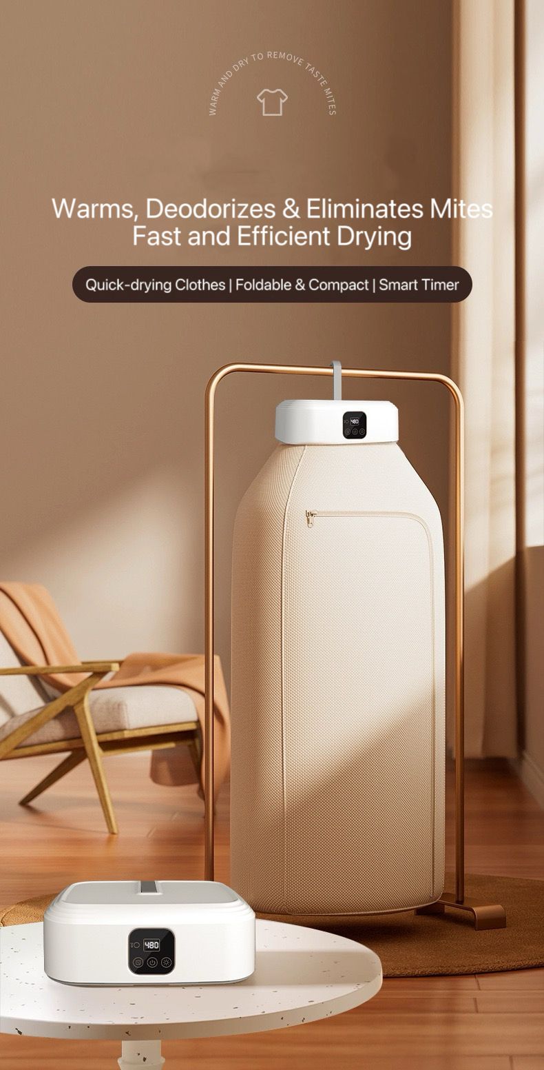 Electric Portable Clothes Dryer 600W with Remote Control, Foldable Mini Dryer. Small Compact Design for RV, Travel & Home Use, Lightweight, Quick and Easy to Use with Dryer Bag